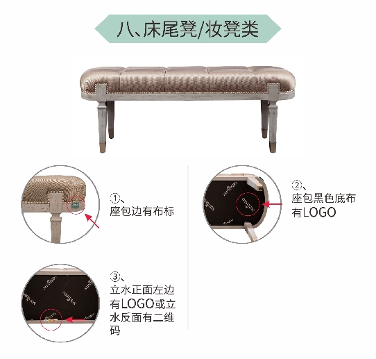 (1)床头下横或者中横左边有LOGO; 床头下横左边有防伪码。